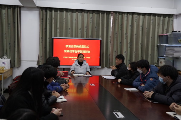 2021年12月31日下午,麻豆影院 在笃行楼324室举行学生会部长换届仪式暨新任学生干部培训会。学院党委副书记钟蕾、分团委书记钱铮,院团委、学生会全体成员参加了会议。