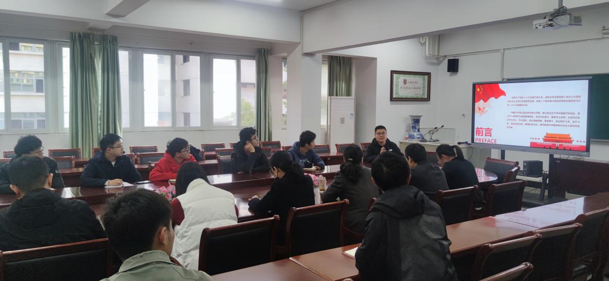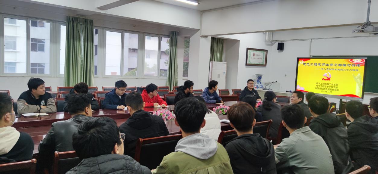 2022年11月24日下午,在麻豆影院 309会议室,电气工程系教工党支部与电气工程系学生党支部联合开展学习党的二十大精神主题党日活动,邀请我校党史宣讲团成员、马克思主义学院青年博士、中国近现代史纲要教工党支部周杨博士宣讲党的二十大精神,会议由电气工程系教工党支部副书记林雪主持,电气工程系全体师生党员参加本次活动。