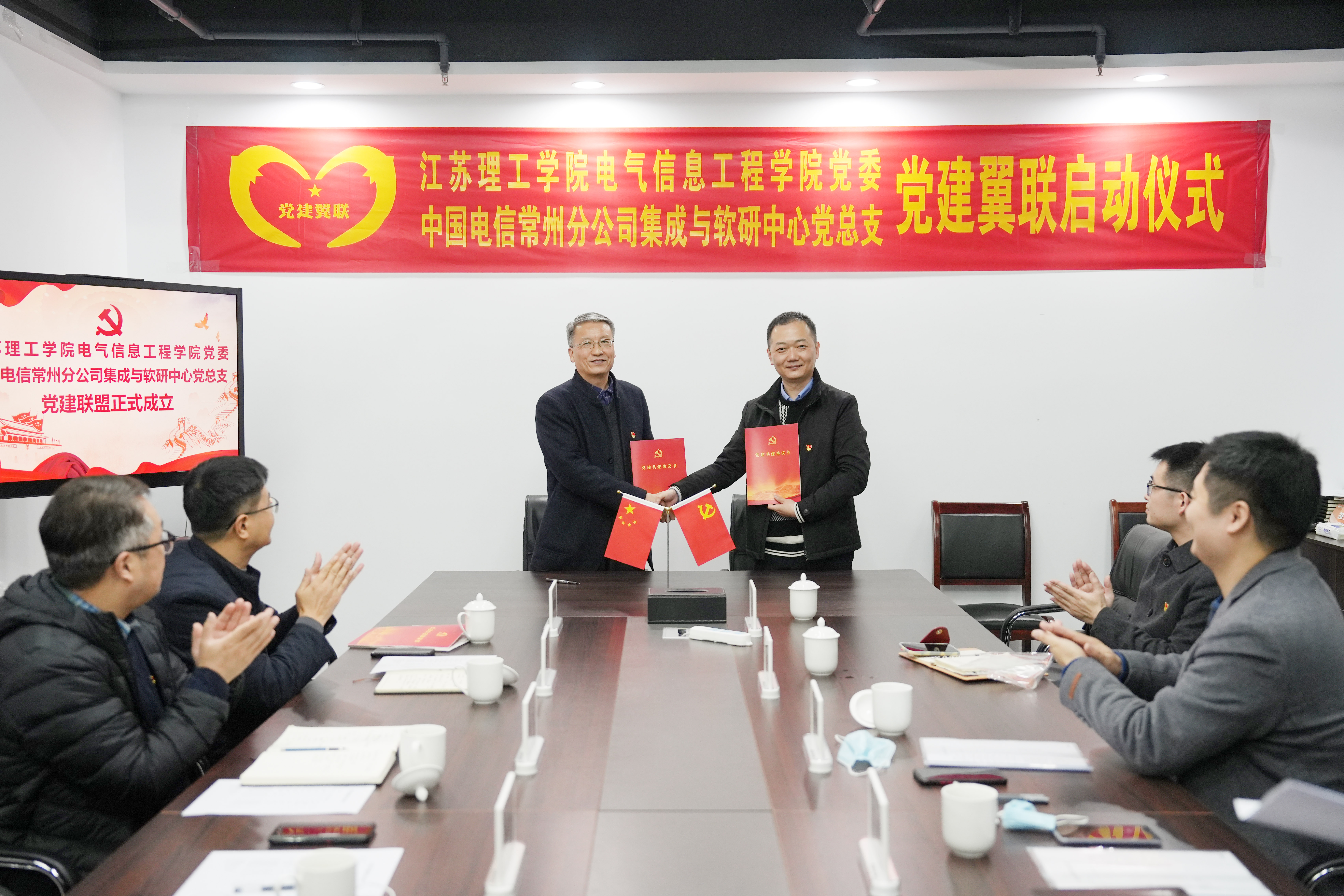 签约仪式在中国电信常州国际数据中心举行。双方各自介绍了所在党组织的党建工作情况,提出共建合作的相关意见和建议,强调目标导向、立足实际、发挥优势,以此次共建为契机,全面构建“组织建设互促、党员干部互动、党建载体互融、校企融合互助”的基层党建工作新格局。随后双方签署党建共建协议书,举行“党建翼联”挂牌仪式,与会党员进行深入交流。双方对结对共建充满信心,约定一同向党组织交出满意答卷。