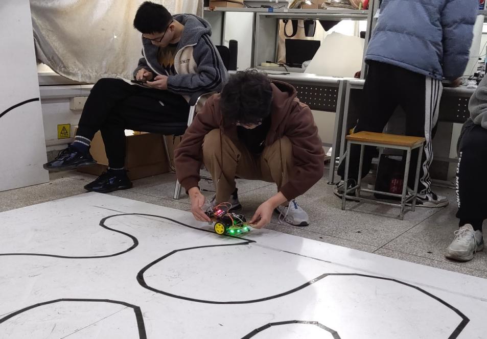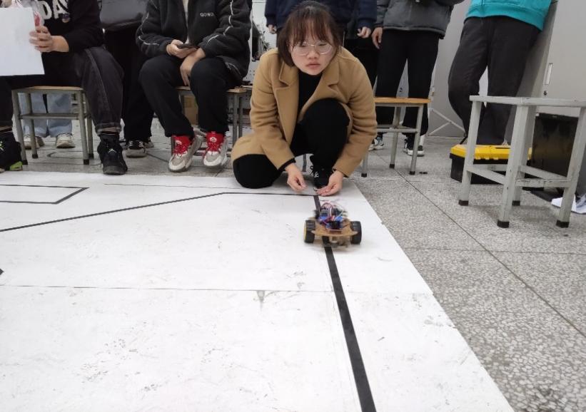 下午一点,比赛准时开始,在比赛期间,每人有10分钟的比赛时间,在此期间可以多次调试,多次发车,直至10分钟结束。正式比赛开始,跑道上,各队的循迹小车各显本领,同学们都高度专注,灵活操作小车,比赛火热进行。