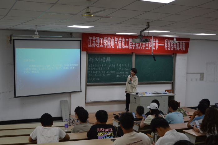 活动中,“科创榜样”即在学科竞赛中取得佳绩的优秀学生结合PPT及实物展示等,向在场的大一新生介绍了如“恩智浦杯”智能汽车竞赛、电子设计竞赛、物联网设计竞赛、蓝桥杯全国软件和信息技术专业人才大赛、中国机器人大赛等学科竞赛基本情况和参赛要求等。宣讲环节后,还设有互动环节,新生们可以就自己关心的问题向“科创榜样”提问,现场气氛热烈。