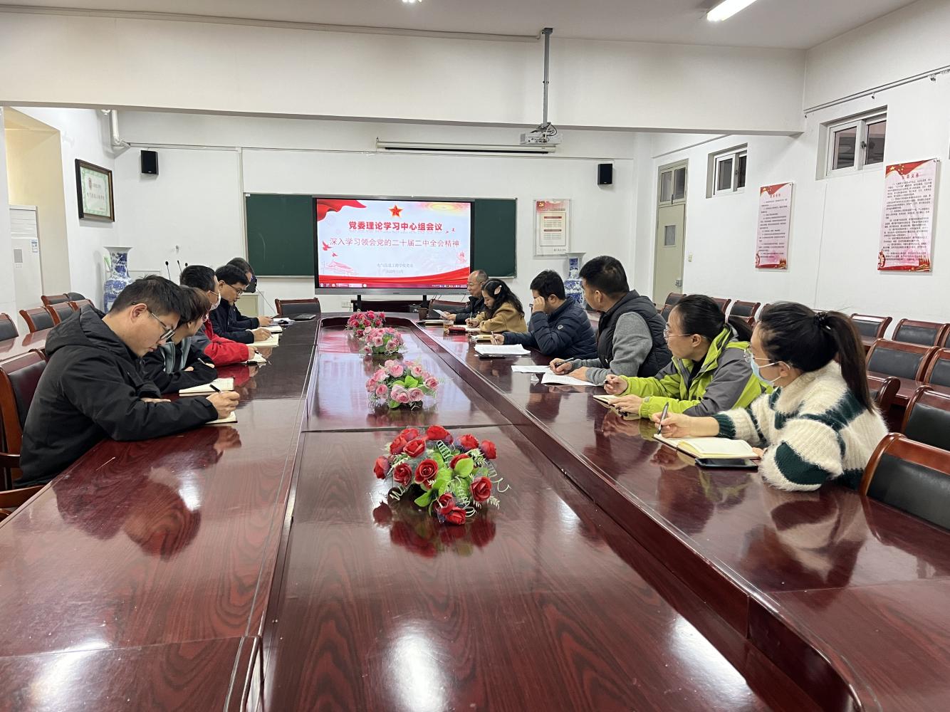 11月29日下午,麻豆影院 在笃行楼309会议室举行党委理论学习中心组召开集体学习研讨会议,深入学习领会党的二十届二中全会精神。学院党委委员及各党支部书记参加了学习会。