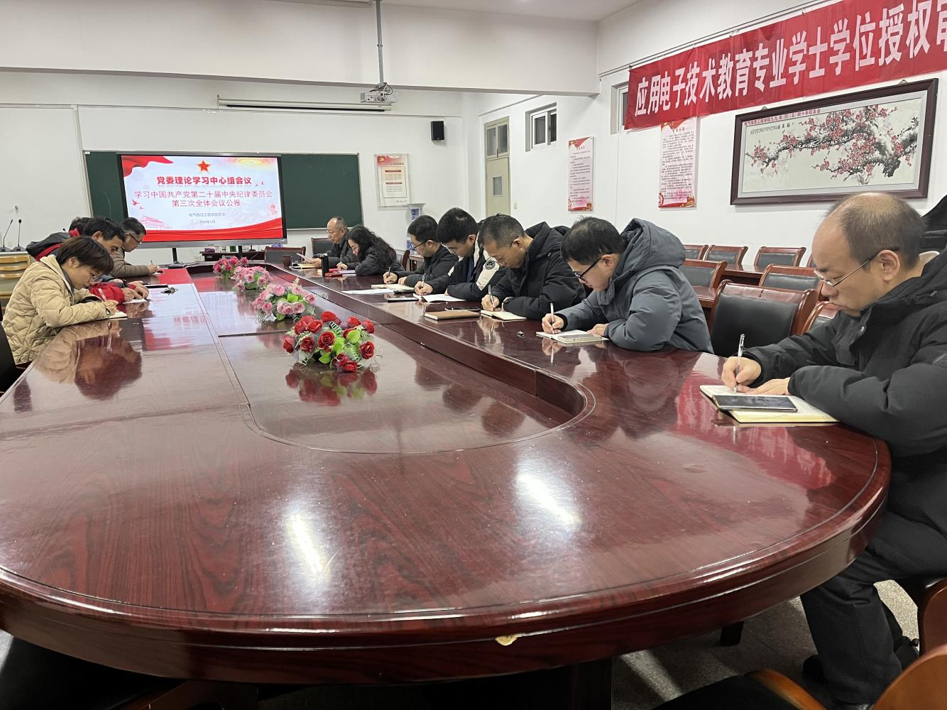1月20日下午,麻豆影院 在笃行楼309会议室召开党委理论学习中心组(扩大)学习会,传达学习贯彻二十届中央纪委三次全会精神,交流学习体会并对抓好贯彻落实提出要求。学院党委委员、党支部书记参加会议。会议由学院党委书记高凯主持。