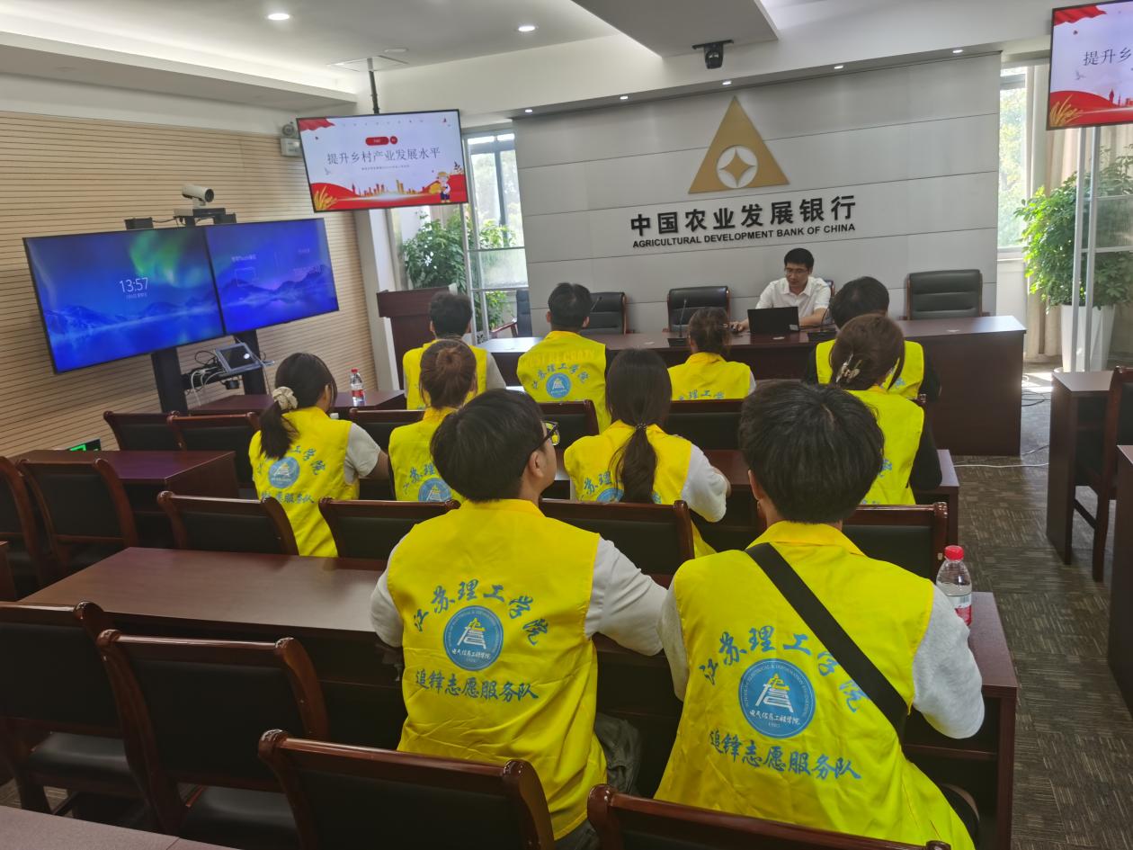 志愿团的同学们来到武进农发行,观看中国农业发展银行专题宣传片并跟随相关负责人学习了习近平总书记关于“三农”工作的重要论述以及农发行在支持乡村振兴战略中发挥的作用和取得的成果。随后,同学们跟随工作人员参观武进农发行,深入了解农发行近年来各项目的推进情况。