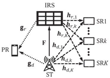 智能反射面(IRS)因其低功耗、数字可调控、部署成本低等优势被认为是高成本、高功耗毫米波基站的替代或补充,成为潜在的6G移动通信关键技术之一。其中,IRS辅助认知无线电通信可以显著提高主从用户网络的通信频谱效率和可靠性。然而,IRS作为无源器件无法有效精确获取用户间尤其是主从用户间的信道状态信息(CSI),导致频谱效率提升受限。张雷副教授针对IRS级联信道CSI两种不精确(有界误差和统计误差)的情形,设计了鲁棒性主被动联合波束赋形方法。该方法联合优化了从用户发射机(ST)的发送预编码和IRS反射相移系数,以最大程度地降低发射机的总发射功率,同时满足从用户(SR)的通信服务质量要求,对主用户(PR)干扰受限以及反射单元相移约束等条件。通过设计针对性数学方法,将非凸优化问题转化为几个凸优化子问题,并提出了快速收敛算法。结果表明即使信道估计CSI误差比较小的时候,从用户发射机天线数和IRS相移元素数也需要进行合理设计,用以平衡问题的可行性和发射机的功率限制之间的矛盾。该方法通过优化波束赋形在不精确的信道估计下使认知无线网络保持了较高的频谱效率。