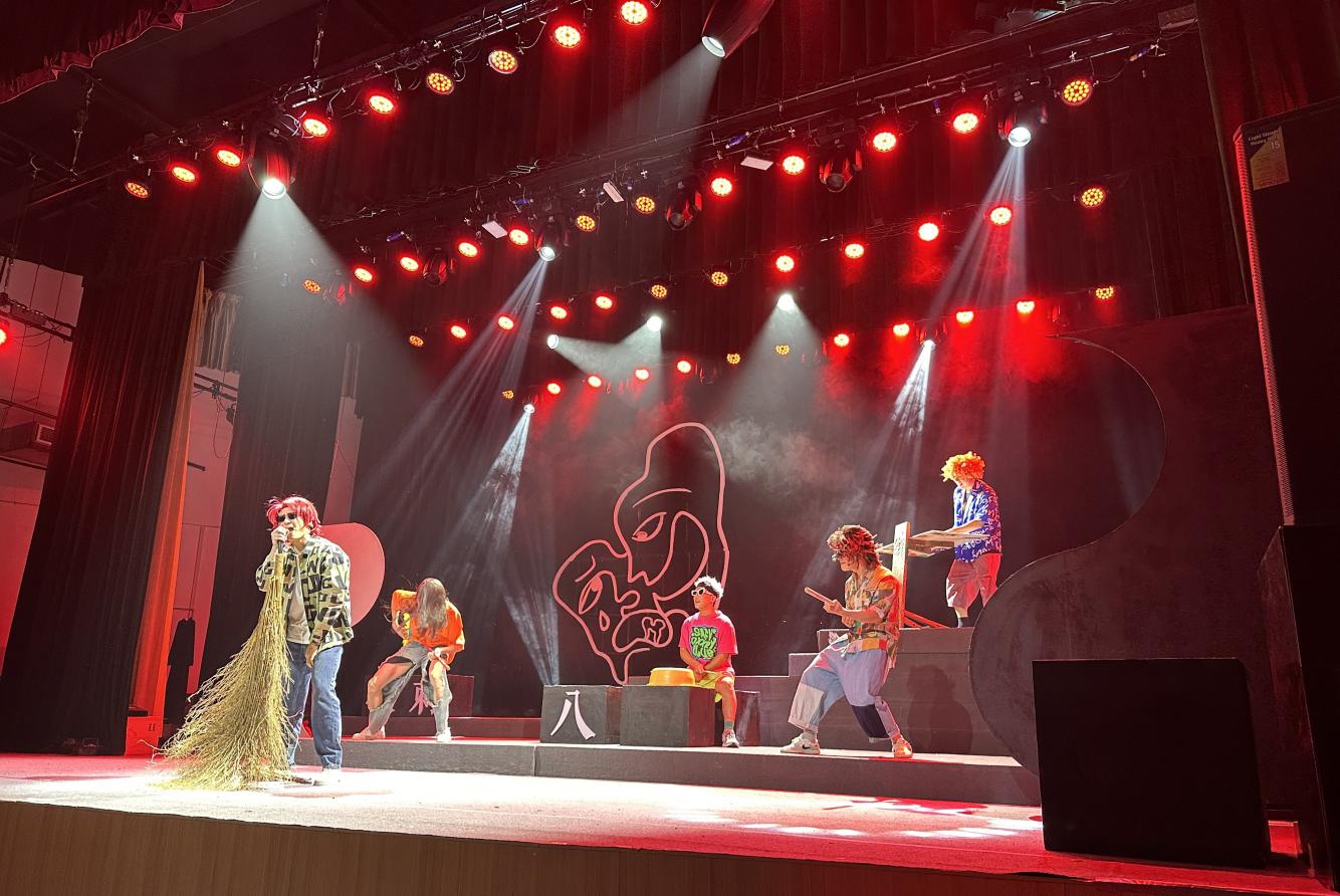 活动现场,师生们在小剧场共同观看了改编自省紫金戏剧文学获奖文本,并由优秀青年编剧赵硕和渔人联合编剧的黑色讽刺荒诞剧《吴八两拔刺记》的首场演出。