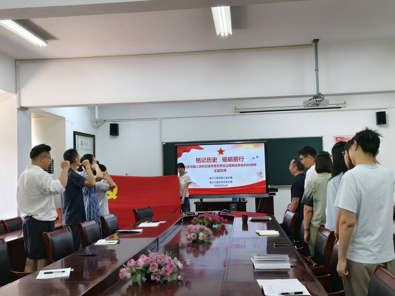 活动最后,全体党员面向党旗重温了入党誓词。学院表示,将以此次教育活动为契机,持续推进党建与教学科研的深度融合,把抗战精神和爱国情怀融入 “课程思政”,引导青年坚定理想信念,勇担科技报国使命,以实绩实效纪念抗日战争胜利 80 周年。
