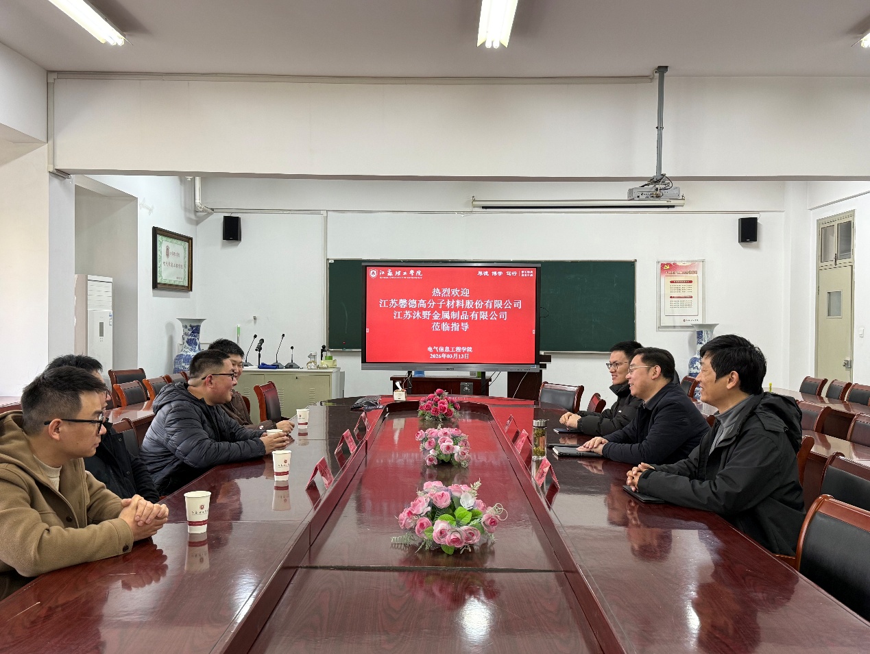 3月13日下午,江苏馨德高分子材料股份有限公司、江苏沐野金属制品有限公司主要负责人莅临麻豆影院 ,就专业领域技术创新、产学研合作等方面开展交流对接。会议在60号楼309室召开,由王琪副院长主持,王鑫、陈天牧和梁宝等骨干教师参会。