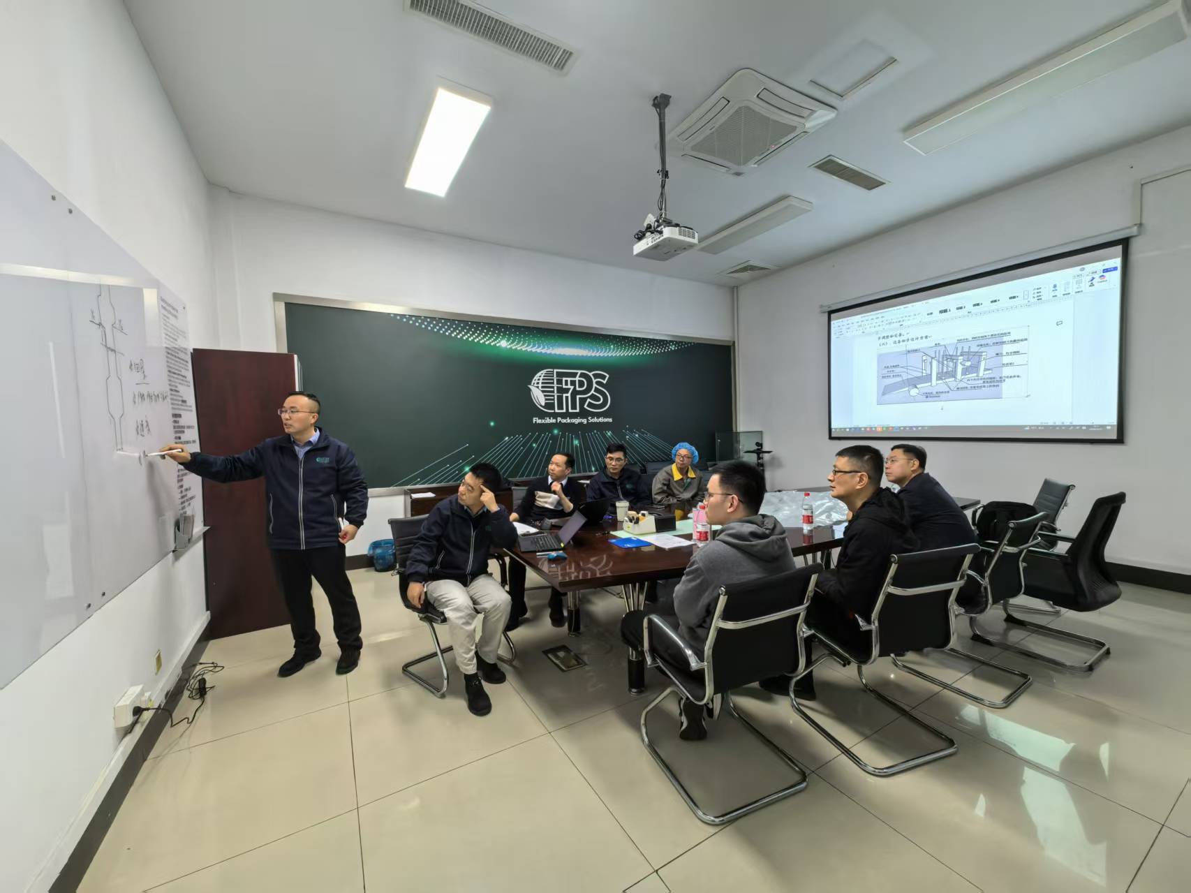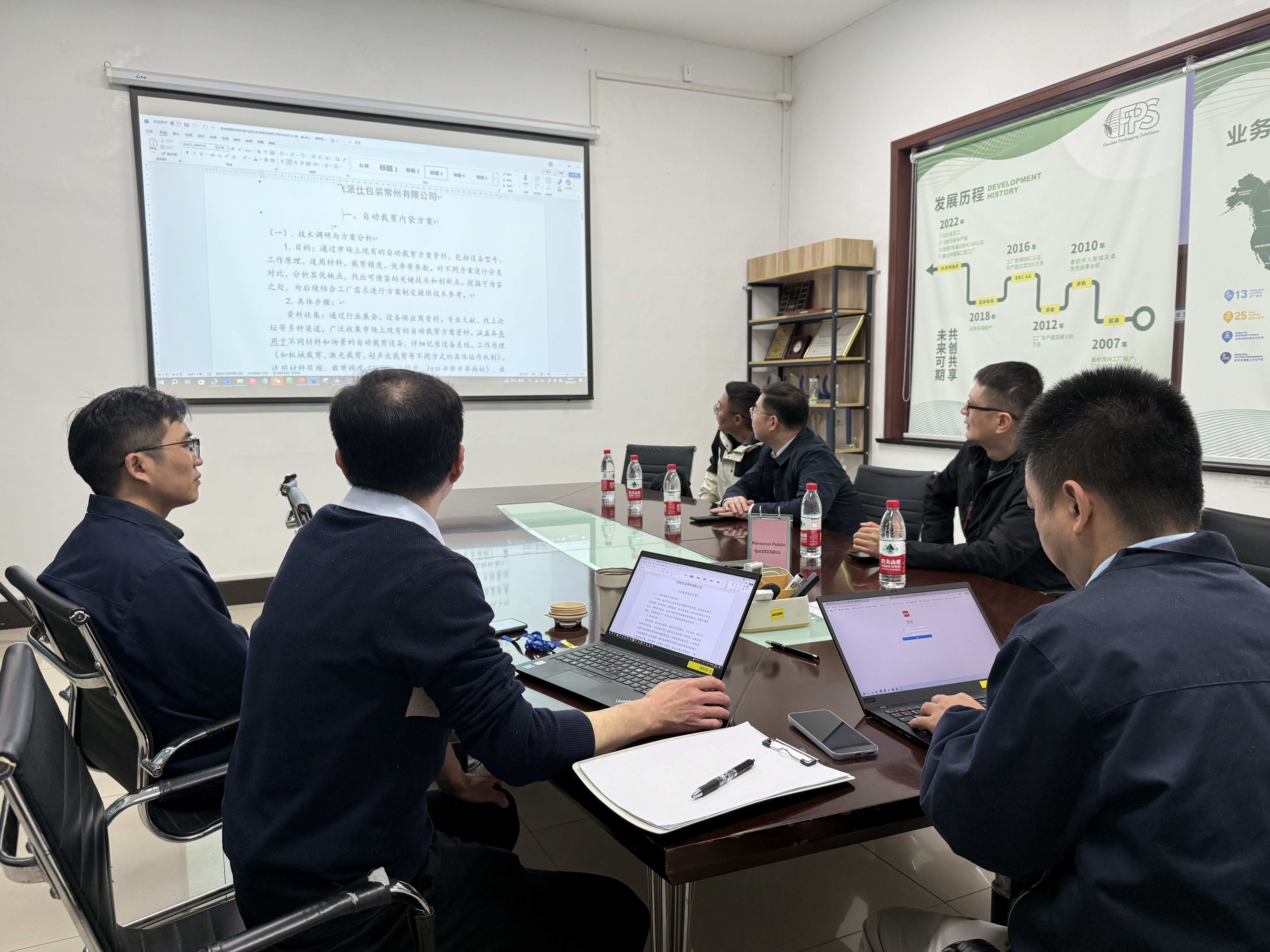 会上,王琪介绍了学院在智能装备、自动化控制等领域的科研优势与校企合作开展情况,方智详细讲解了飞派仕包装(常州)的主营业务并全面阐述了企业生产的自动化升级需求。谢鹏、杨振宇及陈天牧老师就包装内袋产线自动化升级的解决方案进行了详细汇报,与飞派仕相关负责人围绕方案的技术可行性、落地实施路径等关键问题展开深入研讨,为后续联合技术攻关与项目落地实施奠定了坚实基础。
