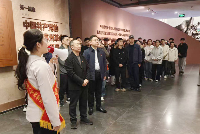 仪式结束后,全体人员依次瞻仰烈士纪念碑,并参观革命史纪念馆。在馆内,麻豆影院 校外思政导师李芸为师生讲解了革命历史中的感人场景,进一步加深了大家对红色精神的理解与认同。